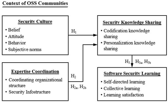 Organizational culture has been shown to influence the success of knowledge management practices [55,56,57,58]. Culture shapes what a group defines as relevant knowledge, and this directly affects the knowledge a unit focuses on [57]. In the context of information security, security culture decides how much security knowledge is disseminated within the community and what knowledge learners can learn. The security culture backgrounds either at organizational or individual levels impact on the amount of security knowledge transferred within the community, further affecting the participants’ learning processes. Thus, the research hypothesis is as follows: