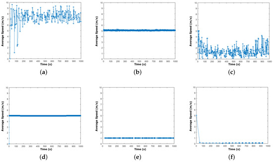 - From Figure 2e,f, we conclude that human models suffer heavily from the speed decay problem and show the worst average speed. Even in the case where a specific speed is fixed, it will not be deployed by these models because it is lower than 5 m/s during the whole simulation period. This problem mainly relates to the non-attributed speed, acceleration, and deceleration in these models, as strictly reported by the settings of these models in Table 3.