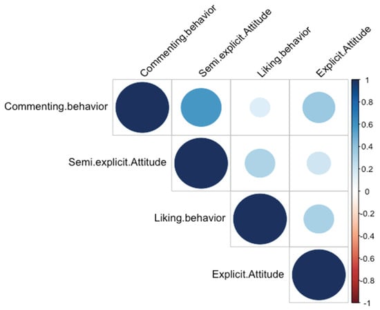 Figure 2 shows the correlation coefficients between the three types of attitudes. The color intensity and the size of the circle are proportional to the correlation coefficients where the blue color represents positive correlations and the red color represents negative correlations.