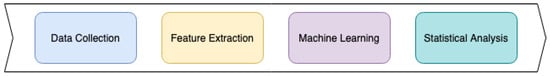 Machine learning methods were implemented with ECG and EEG data to identify the persons by the institution, age, diseases, and groups of disorders. The flow of the proposed method includes several stages, including data collection, feature extraction, machine learning, and statistical methods, as presented in Figure 1. We only considered the persons whose ECG and EEG data were correctly acquired, and the data were not filtered, extracting only the different features.
