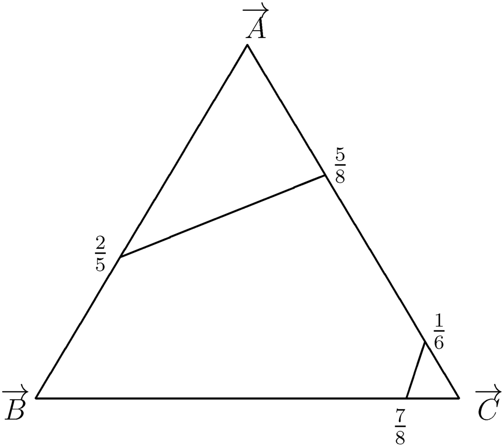 Note that for strategy C is strictly dominated by both A and B. Furthermore, note that if W is chosen large enough we have that B is a best response whenever only one agent chooses C. Note that this implies that A is no longer -dominant. Figure 1 underscores this point by plotting the best response regions of the extended game. Hence, in the extended game we can move with one mutation from to , implying . For a large enough population, can however not be left with one mutation, establishing . Thus, the global interactions model is not robust to the addition and, hence, deletion, of strictly dominated strategies.