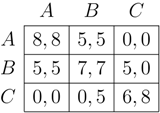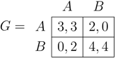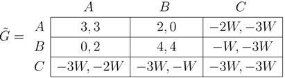 where denotes the probability that agents i and j are matched. The uniform matching rule expresses the idea that no player knows with whom he will be matched until after he has chosen his action. With this rule a player will only consider the distribution of play, rather than the identities of players choosing each strategy. Alternatively, one could interpret the payoff structure as the average payoffs received in a round robin tournament where each player plays against everybody else.