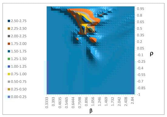 To generate the empirically implied distribution on (r, b) we created a uniform 41 × 41 grid in which r ranges over [ − 2.5, + 2.5] and b ranges over [ − 3, + 3], where and are the MLEs of CHM and also the midpoint of the grid. We then compute the probability density of the Gaussian distribution (given the CHM variance-covariance parameter estimates) for each point in the grid. Let ϕ(r, b) denote this discretized distribution26, and for ease of translation let g(ρ, β) ≡ ϕ[ln(1 − ρ), ln(β − 0.2791)].