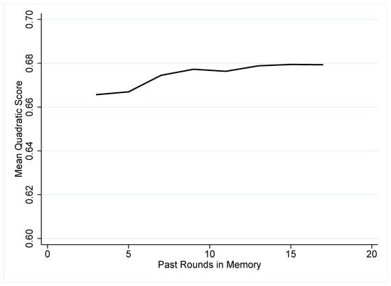 Following Chmura et al. [], we use a quadratic scoring rule in order to assess the goodness of fit of each learning model.11 This rule, as described in Equation (13), provides a measure of nearness from the predicted choice to the observed choice.12