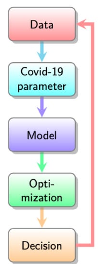 Figure 1. Data-Driven MFTG Model: Data, Covid-19 parameter, Model, Optimization, Decision and back to the data measurement. The verification-validation procedure used in this article.