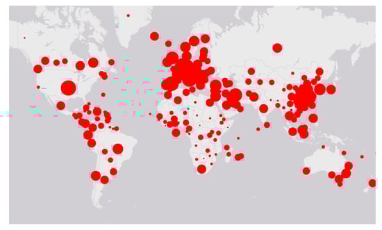 - Xu, B.; Gutierrez, B.; Mekaru, S.; Sewalk, K.; Goodwin, L.; Loskill, A.; Cohn, E.L.; Hswen, Y.; Hill, S.C.; Cobo, M.M.; et al. Epidemiological data from the COVID-19 outbreak, real-time case information. Sci. Data 2020, 7, 1–6. [Google Scholar] [CrossRef]