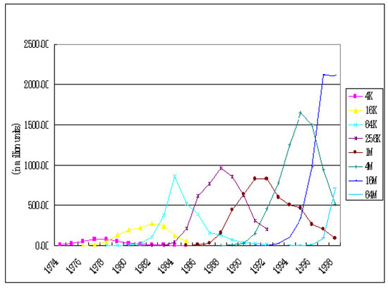 Global dynamic random access memory shipment by IC density. Data source: [3].