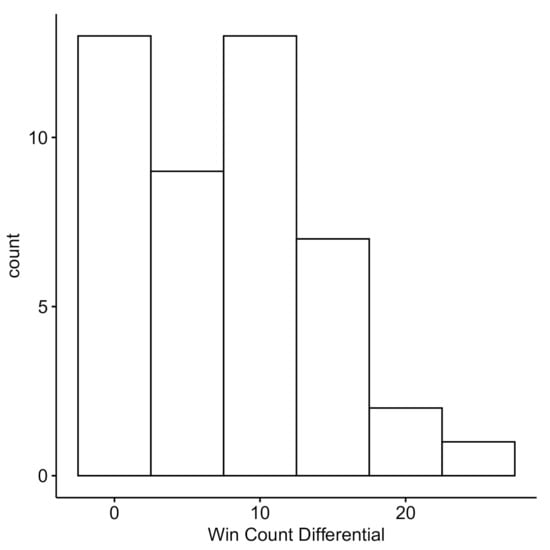 Win differential: The distribution of the win count differentials within a dyad.