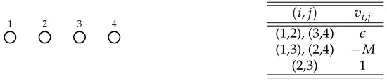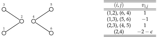 Let us consider the graph G depicted in Figure 6 and the valuation function v whose non-null values are listed in Figure 6, and in which is an arbitrary positive parameter.