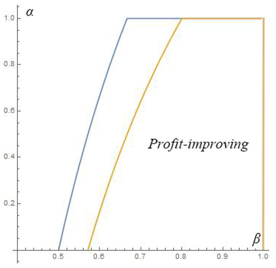 Proposition 4 implies that CSR initiatives can benefit the consumer-friendly foreign firm’s profitability, consumer surplus and social welfare at the same time, realizing a “win–win–win” situation. Additionally, the upstream firm enjoying a greater status in terms of wholesale-price bargains may have more of an incentive to implement CSR, as it enhances the firm’s own profits. Especially, if , as long as lies in , the profitability of the consumer-friendly firm will be improved by its CSR initiatives.