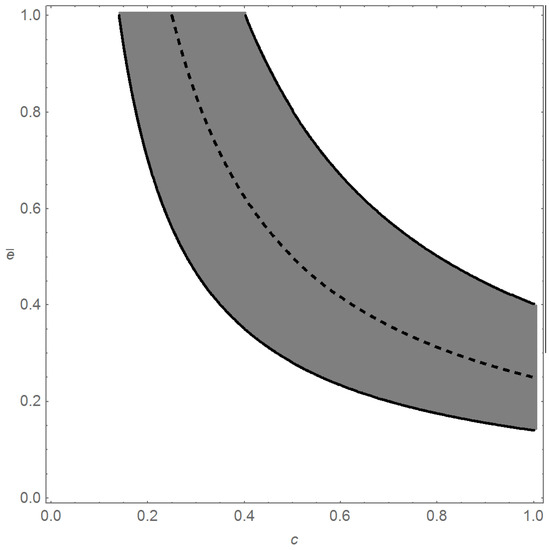 Furthermore, the solution of the above together with (7) characterizes the unique minimum. Namely, . Swapping players’ indexes, one can find the maximum of the bottom shaded area of Figure 1, . □