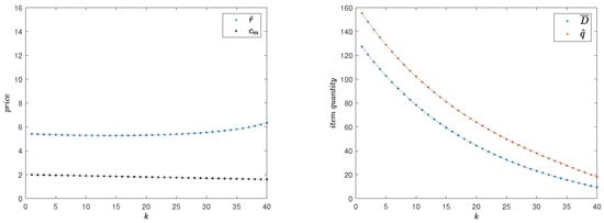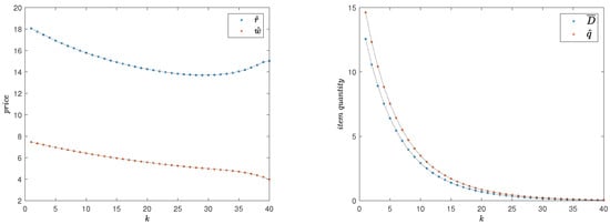 A price-setting supplier has to cater to an uncertain within each period k in a timespan composed of n periods. Her decision variables are the retail prices s and supply quantities s. We denote the net running value of the profit obtained at period k, by , and its expected value with respect to a given distribution by . The supply quantity is to address the stochastic demand . Luckily, there exists a classical closed form solution for each optimal as a function of —the solution for the single-period price-setting newsvendor problem []. Thus, the expected profit at period k will be of the following general form: