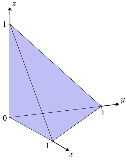 In the generalized game every point in a compact and convex subspace represents a demand total. Each player picks a coordinate of this point and that coordinate specifies the player’s demand. Players are said to be coordinated—i.e., the demand total is ≤ $1—if the point is located on or beneath the surface of an -simplex. Figure 1 shows the coordinated subspace in .