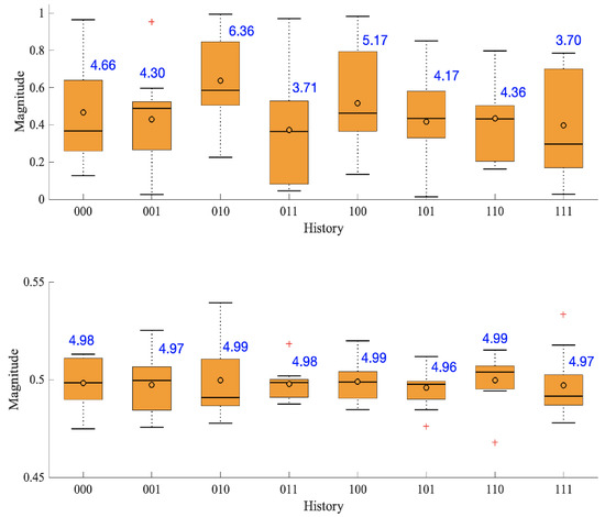 There are two histories that can become fixed points. The vector component with index ‘000’ is a fixed point if that demand set is uncoordinated. Table 6 shows the history trace for each possible history state in a coordinated demand matrix; history ‘111’ is a fixed point in this case.