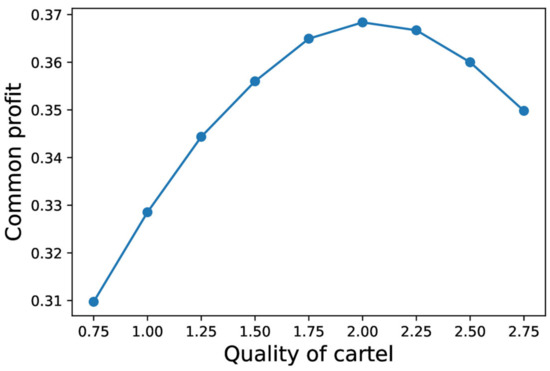 It is important to note that this decision to leave the cartel depends not only on the proximity of the firms’ stores to the profit maximization strategy participant, but also on the consumers’ preferences. In the case of no consumer preferences, while considering the vertical differentiation of the product, i.e., (consumers of type 5), all firms would prefer to stay in the cartel. They do not need to attract customers indifferent to the product quality by reducing their prices and they can enjoy higher profits by staying in the cartel. Thus, variability of consumer preferences and consequently their rational behavior should be appropriately handled.