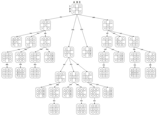 Structural similarity of Tic Tac Toe branches in Figure 2.