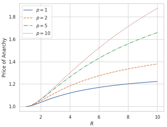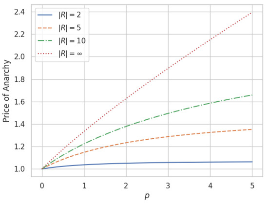 - Roughgarden, T. The price of anarchy is independent of the network topology. J. Comput. Syst. Sci. 2003, 67, 341–364. [Google Scholar] [CrossRef]