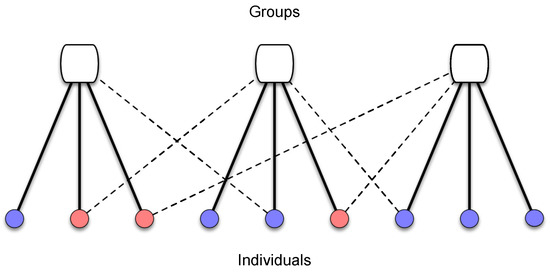 The population is structured in groups, and the individuals can have multiple group affiliations. More specifically, there are