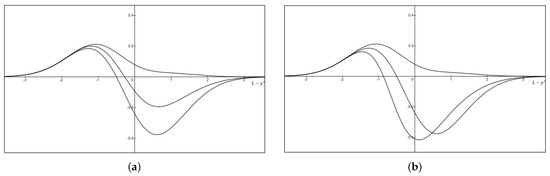 The change in the value of where with different measurement errors. (a) , , the curve crosses the x-axis when ; (b) and , the curve crosses the x-axis when .