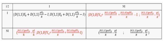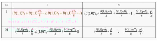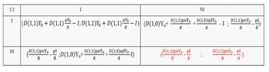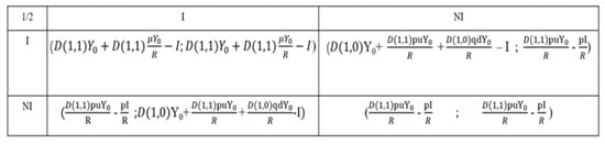 where . Let the probability p denote the probability that state G is realized. As in (Wang et al., 2023), if we let , the expected value of is given by . We denote by r the risk free interest rate and we let . As in (Wang et al., 2023), we denote the duopoly symmetric profit of a firm in period t by so that from the above we have: