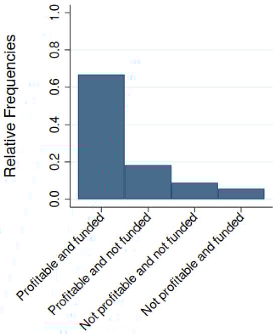 Relative frequencies of accepted and rejected, profitable, and non-profitable projects.
