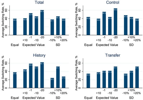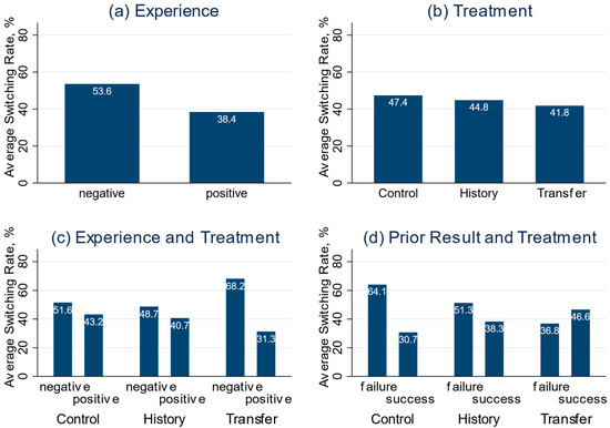 Next, Figure 5b shows the overall switching rates in the different treatments, revealing a constant decrease going from Control to History and Transfer. These differences are not significant, however.16