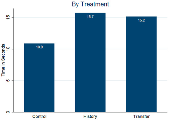 Our next issue concerns the decision-making time of investors. Interestingly, the decision times in the two social treatments, History and Transfer, are significantly—and more than 40%—longer than in Control (Figure 7).20 The difference in decision times between History and Transfer, on the other hand, is negligible at 0.5 s. This result appears to be driven by a smaller proportion of investors making their decision very quickly (see density estimate in Appendix A Figure A2) and is stable across rounds (see Appendix A Figure A3). A panel regression confirms these findings (Appendix A Table A4). Interestingly, decision speeds do not seem to be correlated with either the decision made by the investor or the absolute difference in the expected value or variance between the two projects.21