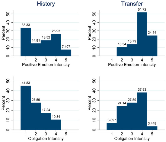 | 23 | Emotion and obligation feelings are only weakly correlated in Transfer (0.35, p = 0.06). See Table A5 for a full overview. |