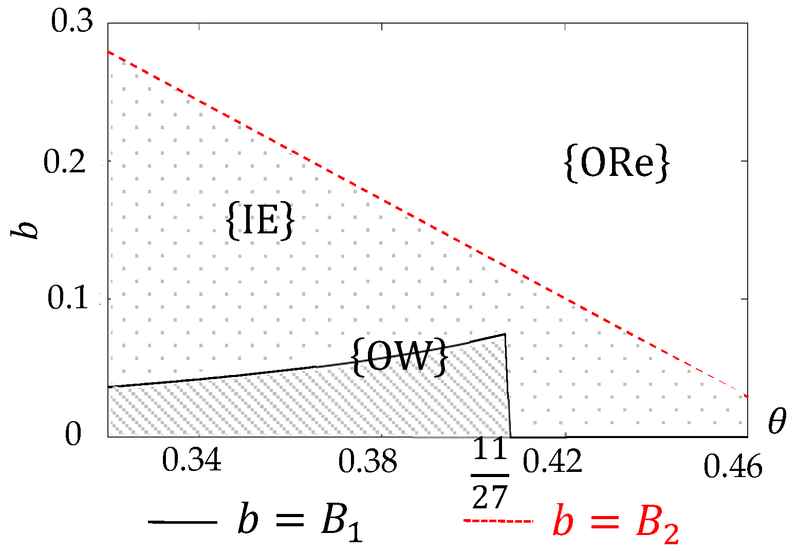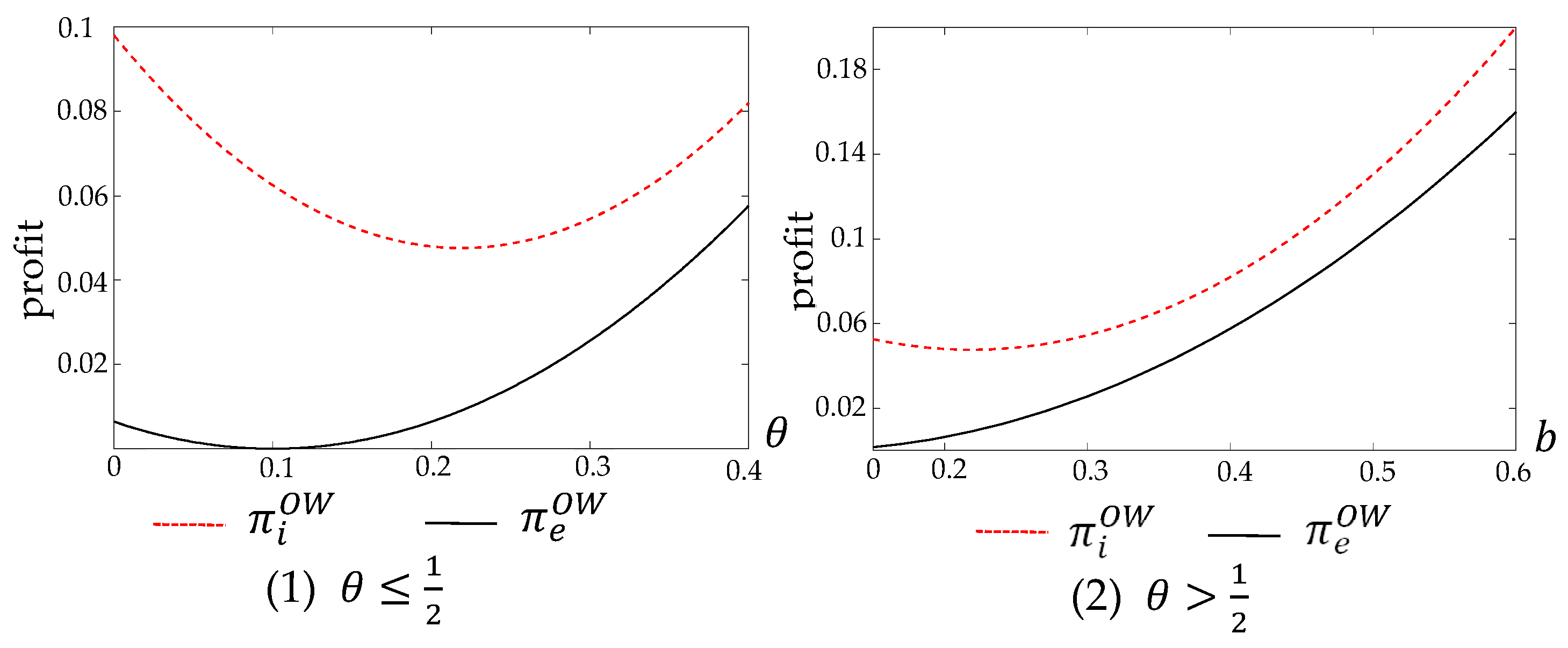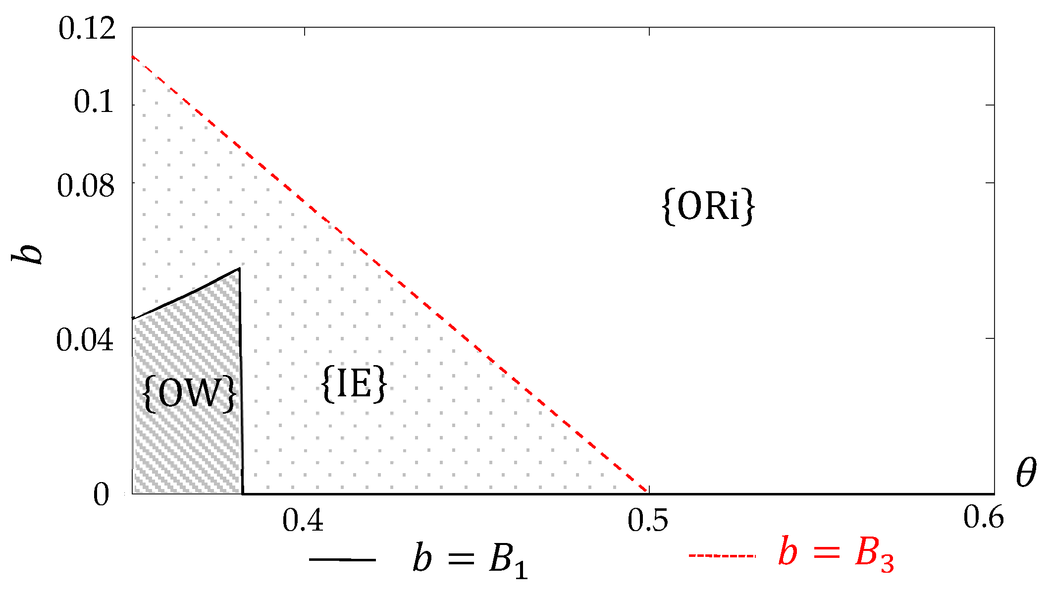 - Singh, N., & Vives, X. (1984). Price and quantity competition in a differentiated duopoly. The Rand Journal of Economics, 15(4), 546–554. [Google Scholar] [CrossRef]