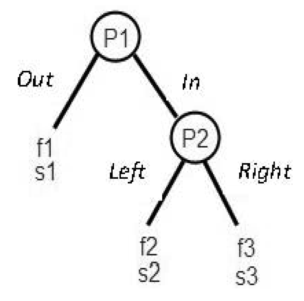 Recent research demonstrates the potential of simple models that capture these psychological factors e.g., [3,5,13]. However, there is little agreement concerning the best abstraction and the relative importance of the distinct psychological factors. The main goal of the current project is to address the quantitative “best abstractions and relative importance” questions with the organization of a choice prediction competition. It focuses on simple response games, similar by structure to the games studied by Charness and Rabin [14]. The game structure, presented in Figure 1, involves two players acting sequentially. The first mover (Player 1) chooses between action Out, which enforces an “outside option” payoffs on the two players (f1 and s1 for Players 1 and 2 respectively), and action In. If In is chosen then the responder (Player 2) determines the allocation of payoffs by choosing between actions Left that yields the payoffs f2, s2, and action Right that yields the payoffs f3, s3.