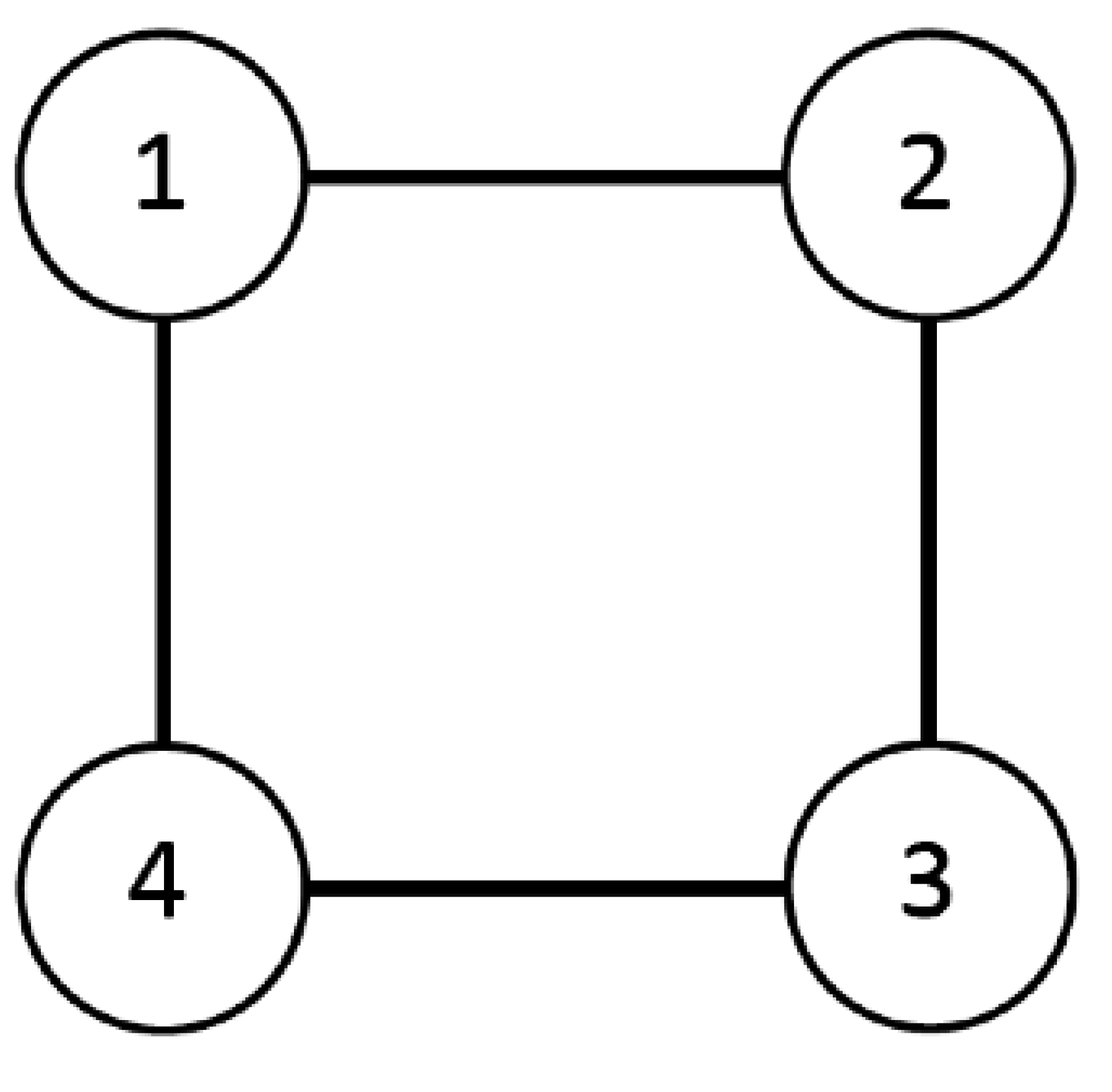 In each period, , each player, i, receives the same integer endowment, . Player i then chooses the size of the contribution, , with and its location, . Each player can locate at the position of a neighbor or his own position and keeps the difference, , for himself. The location of contribution, , can be any corner of the square, i.e., the position of one of the four players. In the following, we also refer to as the player located at corner, . Contributions have to be positive ( for all i) to make their location always payoff relevantly. Further, the contribution, , can be located at one location, , only. By allowing only positive contributions at exactly one location, we intend to understand the motivation behind the contributions. If a player could contribute nothing to the public good, his location choice would be meaningless, which we want to avoid.