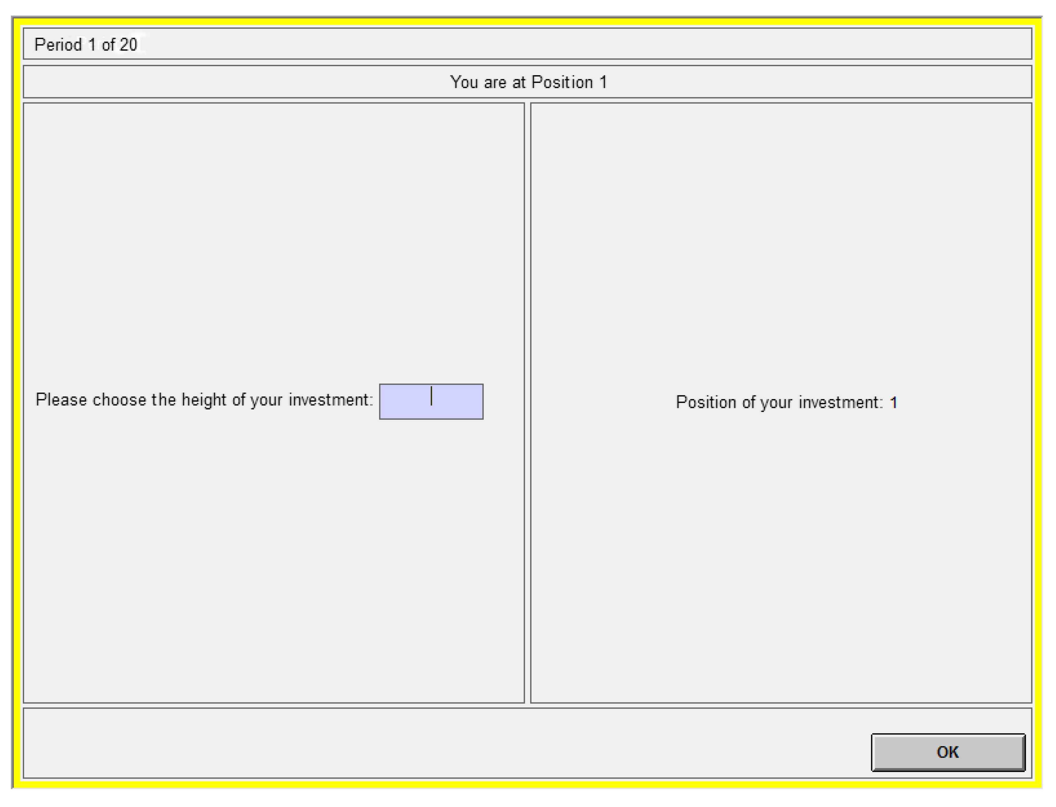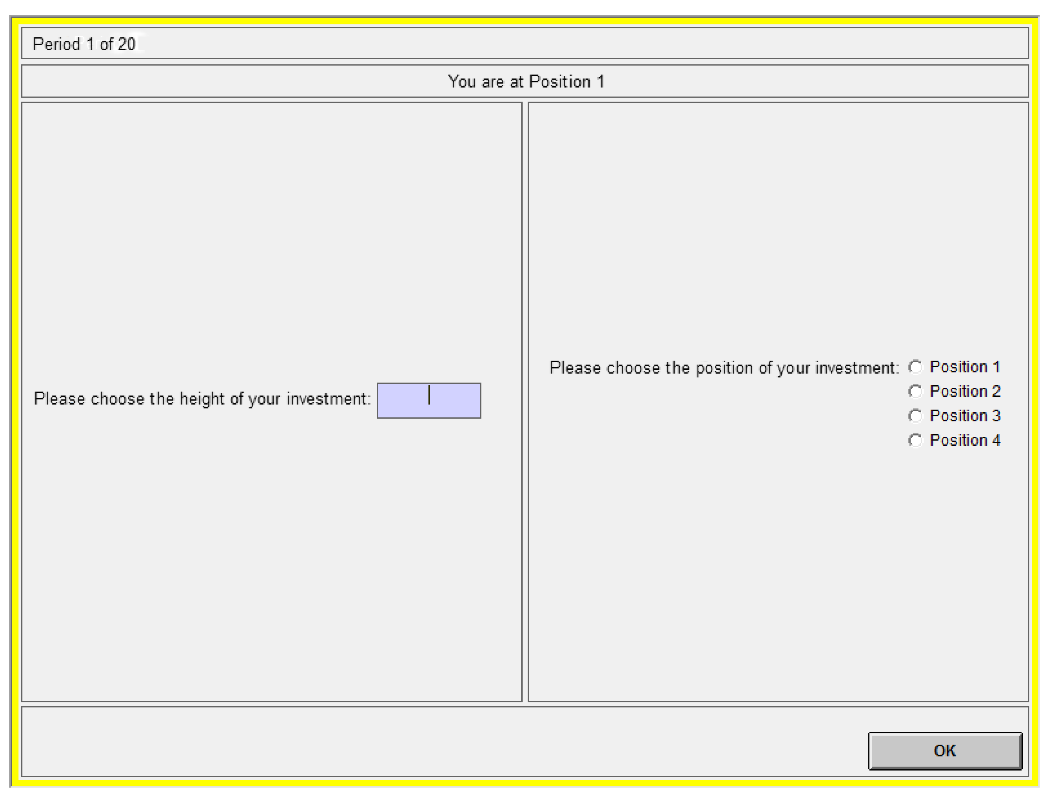 4 In the beginning of the first period, we assigned each participant to a group and a location, which did not change throughout all 20 periods. In each period,