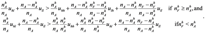 Consider a market with nF firms and nA applicants. Every firm f wants to hire up to one applicant, and every applicant a can work for up to one firm. Firms and applicants have one of two possible qualities, high (h) or low (l). A matching is a mapping that (i) maps each agent to a partner on the other side of the market or leaves her unmatched, and (ii) for any firm f and applicant a, maps f to a  if and only if it maps a to f. The interpretation is that a firm f and an applicant a are matched if firm f hired applicant a and applicant a works for firm f.