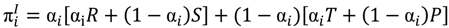 With R, S, T and P being the individual payoffs of the prisoners dilemma game for the respective situations. Superscript I stands for informal profit expectation as compared to superscript F for formal profit (within an institution).