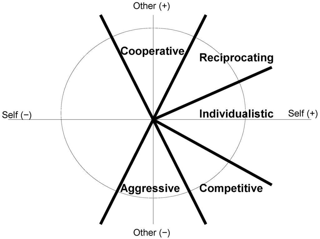 - Kuhlman, D.M.; Marshello, A. Individual differences in the game motives of own, relative, and joint gain. J. Res. Personal. 1975, 9, 240–251. [Google Scholar] [CrossRef]