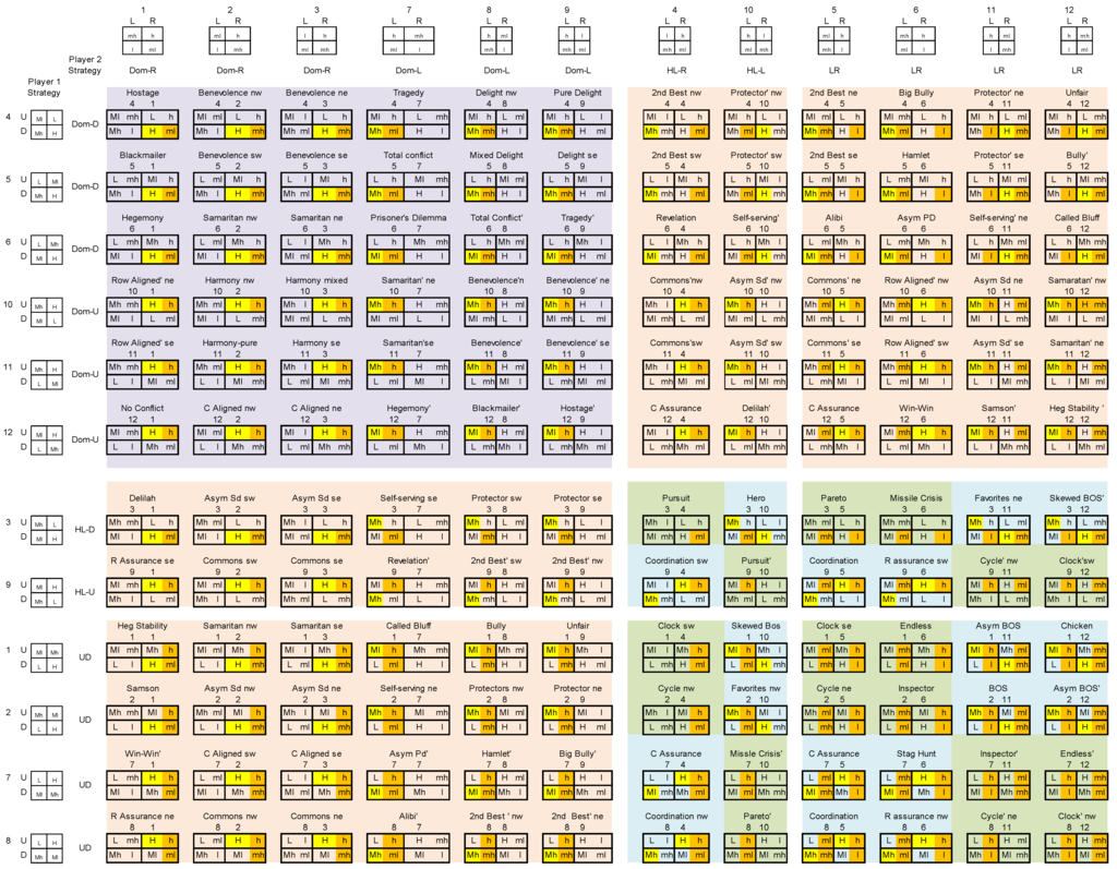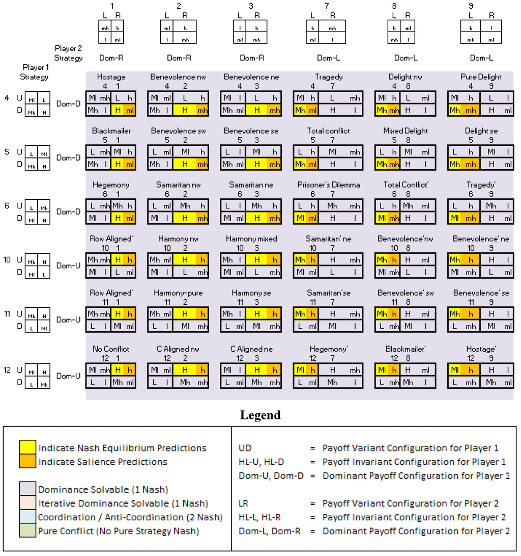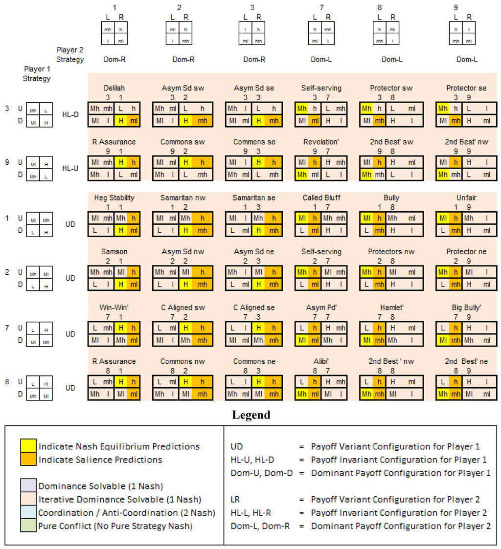 - 8Predicted outcomes are the same for Player 2 except for cyclic games with HI/IL structures for both players. In these games, Player 2s best responses would result in the upper left and lower right (rather than lower left and upper right) outcomes in each game.
