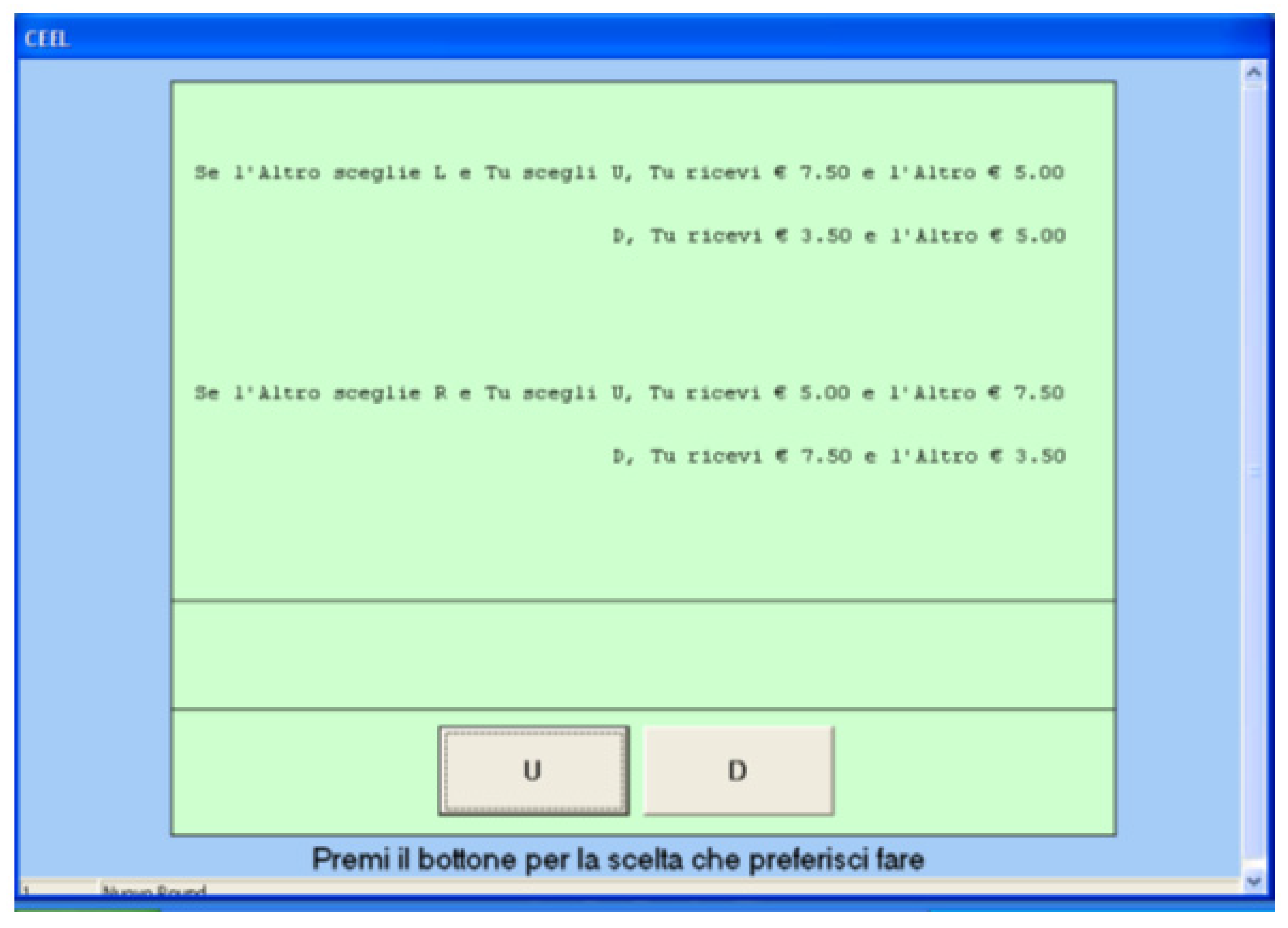 - 11Instructions for Player 2s were identical except they were to choose between strategies L and R (and their opponent’s between U and D).