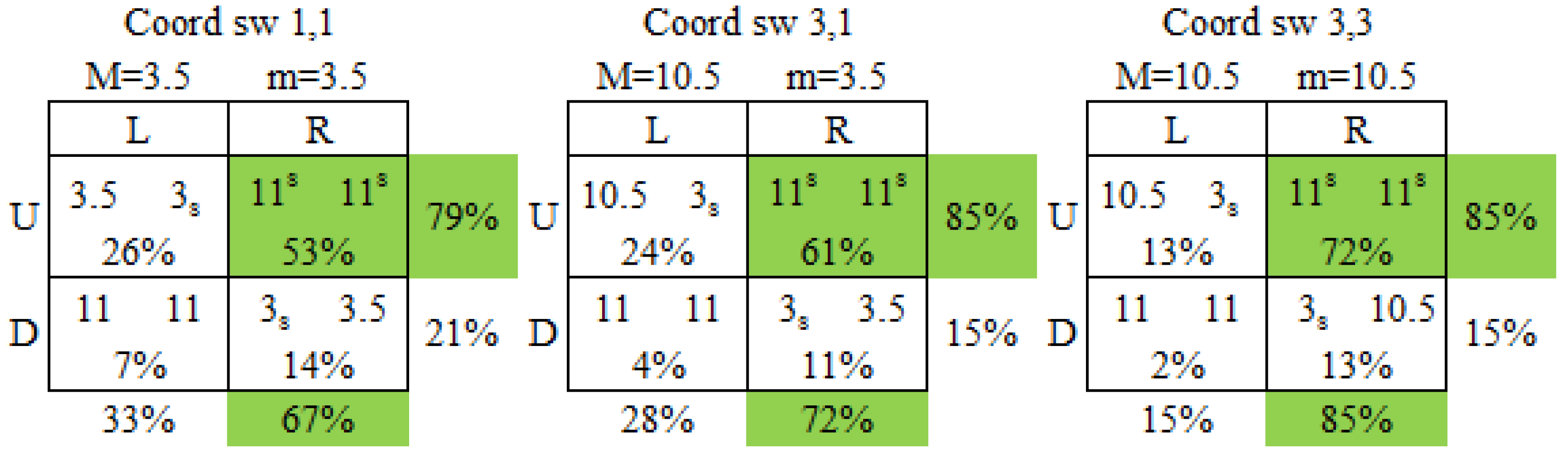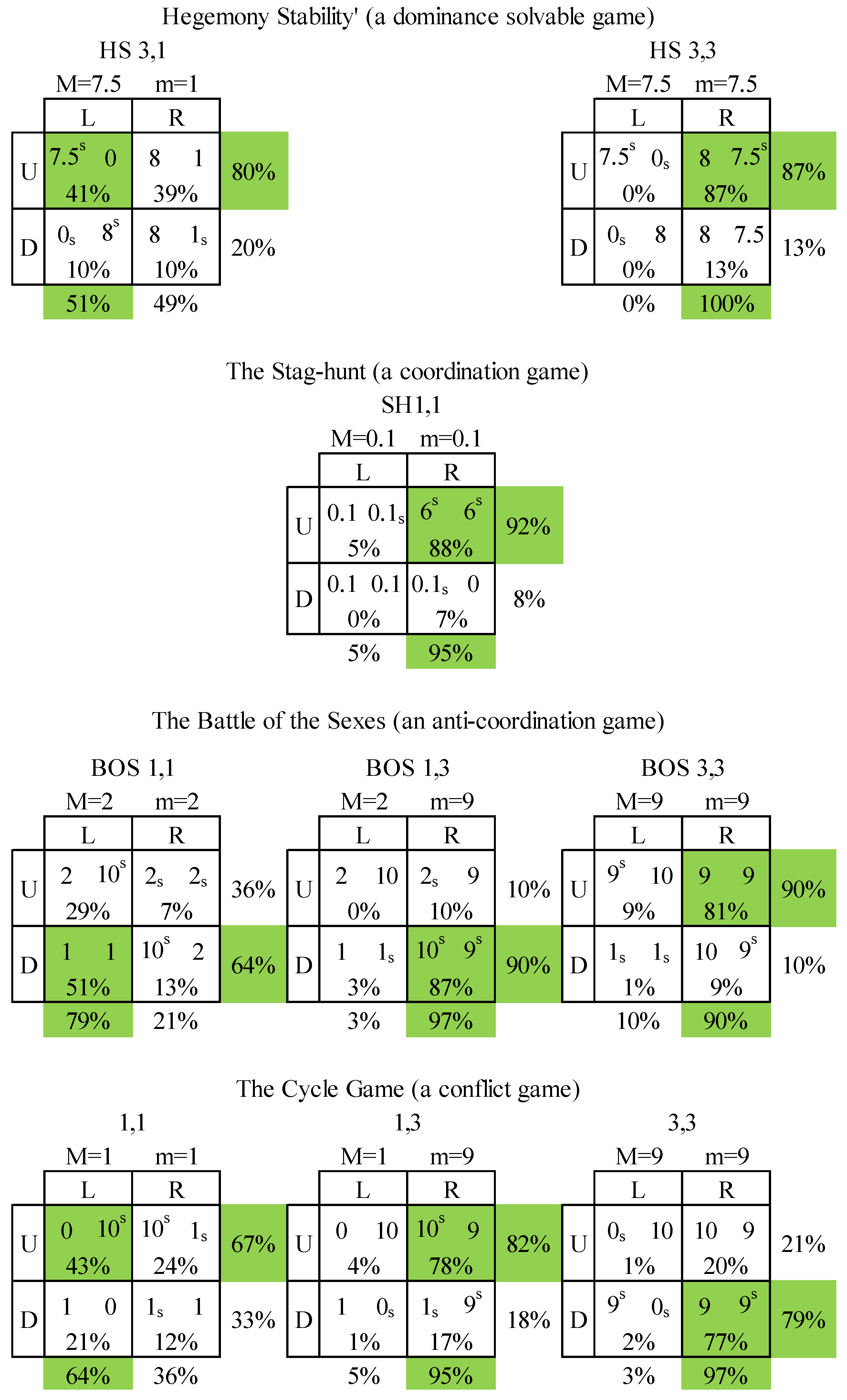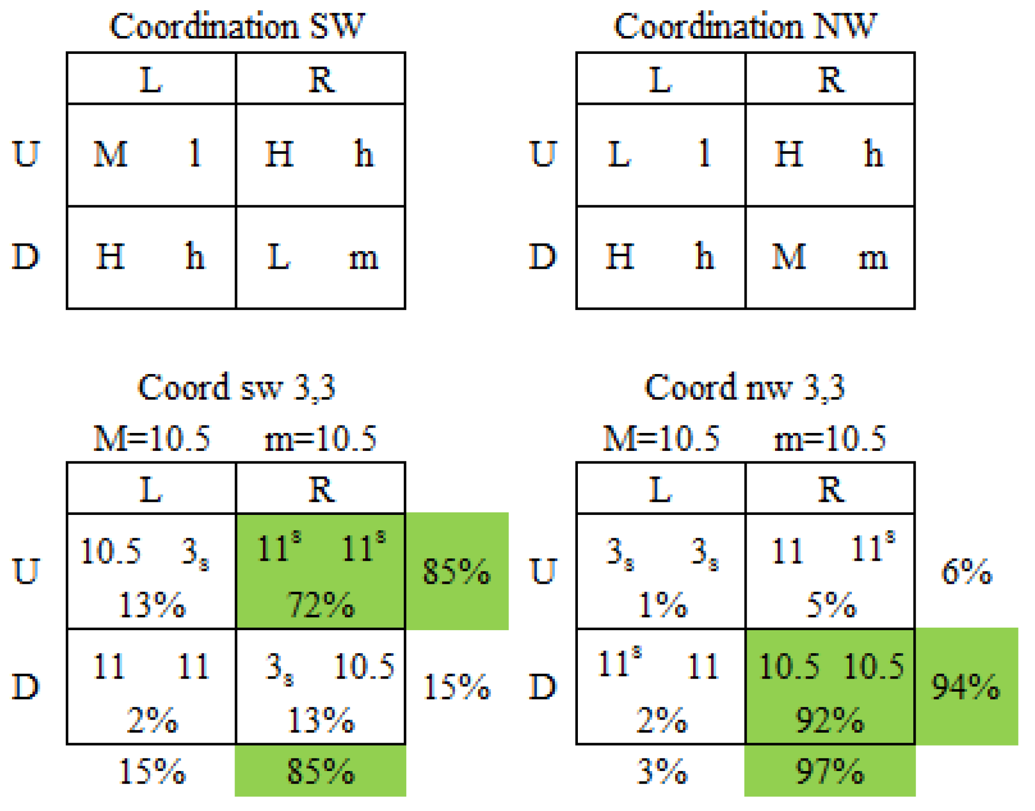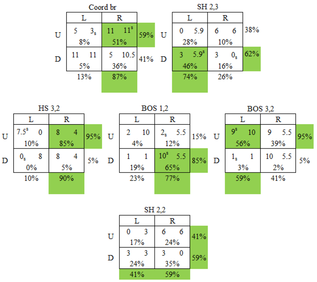 - 12Superscript s and subscript s here and in the subsequent figures, indicate the larger and smaller salient payoffs in the games.