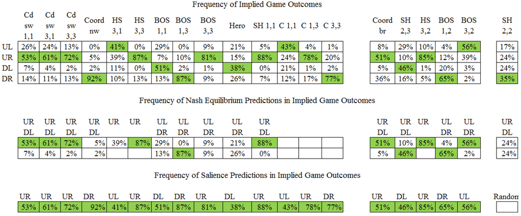 Chicago/Turabian StyleLeland, Jonathan W., and Mark Schneider. 2015. "Salience and Strategy Choice in 2 × 2 Games" Games 6, no. 4: 521-559. https://doi.org/10.3390/g6040521