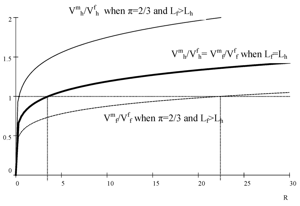 Comparative statics shows that and since . The results regarding π, and follow from the fact that the outcome of the choice of a market regime will be determined (from Equation (16)) by whether or not . This minimum level is maximized when and .