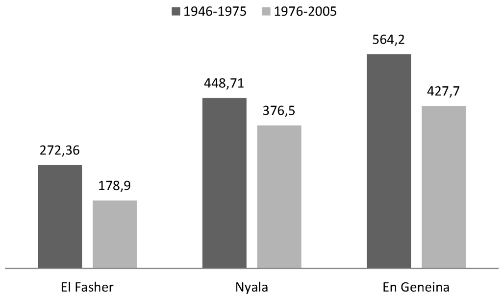 - De Juan, A. Long-term Environmental Change and Geographical Patterns of Violence in Darfur, 2003–2005. Political Geogr. 2015, 45, 22–33. [Google Scholar] [CrossRef]