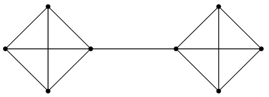 Consider the network in Figure 2, the eight agents are divided into two sub-complete networks which are connected by a single link.5 We say it is a small-world network because agents belong to the sub-complete network is highly clustered and the distance between any two agents is not longer than three. Fix the structure as appears in the figure, suppose all agents equally distribute their endowments toward their direct links, then the total value of this small-world network will be given by