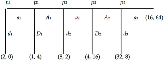 Iij is the j-th information set (j ≥ 1) of agent i (i = 1, 2). This Centipede Game has two pure strategies at each information set: Either ‘Down’ ending the game, or ‘Across’ allowing the other agent to choose an action. The agents’ payoffs are represented at the tree’s endpoints, the left member being the first agent’s payoff, the right member being the second agent’s payoff. The backward induction profile is (d1d2d3, D1D2).