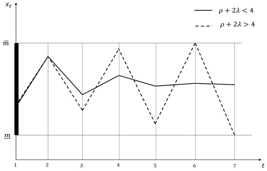 Therefore, the amplitude of decision cycles increases with the shift of the option set . Since the DM starts emotionally balanced (), we know by Proposition 1 that . A greater asymmetry (or shift) of the option set with respect to 1/2 corresponds to greater forgone utilities affecting the subsequent path of decisions. If the option set is temptation shifted (), the forgone temptation utility will be high. If the option set is self-control shifted (), the forgone self-control utility will be high. In both cases the absolute value of emotional balance in the next period () will be high. As a result, the difference between choices across periods () will be high as well.