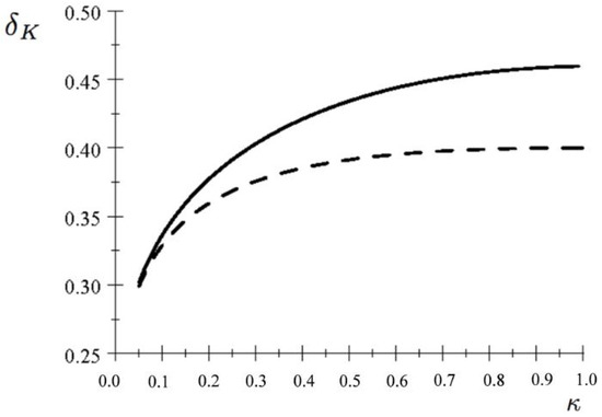 Figure 5 shows the right-hand side as a function of (for ) when . The dashed curve is drawn for altruists with . We see that, for , cooperation is somewhat harder to sustain between moralists than between altruists with . In summary, in this numerical example, cooperation is easiest to maintain between purely self-interested individual than between altruists, and easier to sustain between altruists than between moralists.