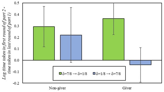 Although the experiment was not designed to investigate reaction times, this work also identified some evidence suggesting a bias in favor of cooperation among altruistic players. Unlike participants who typically take long pauses to determine play in the first round of a new set of RPDs, altruistic participants (who gave in the DG) who transition to scenarios with long RPDs do not slow down at all. This may be the reflection of the time participants need to deliberate in (un)familiar scenarios: non-givers weigh up the potential benefits of strategic cooperation, regardless of the sequence of RPDs experienced; givers, on the one hand, hesitate to start cooperating in an environment where cooperation is not an equilibrium, but, on the other, they are ready to enlist in cooperation when the scenario is favorable.