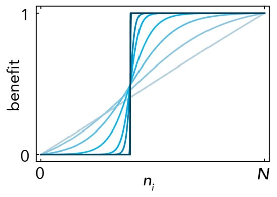 2.1. Stability (Bistability) Depends on the Shape of the Benefit Functions