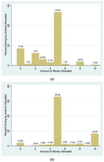 - Engel, C. Dictator Games: A Meta Study. Exp. Econ. 2011, 14, 583–610. [Google Scholar] [CrossRef]