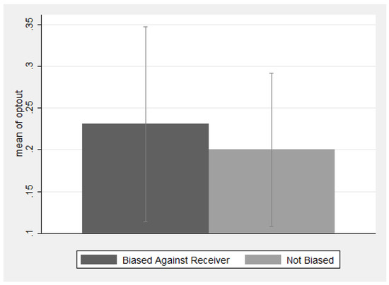 As a check, I examined what happens to sorting when a dictator is biased against the race of the receiver (). In this case, I draw a bar graph in Figure 6. Confirming the results above, there was no evidence that bias had an effect on sorting, even when the dictator held an implicit bias against the receiver’s race.