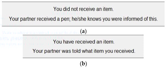 - McCabe, K.; Rigdon, M.; Smith, V. Positive reciprocity and intentions in trust games. J. Econ. Behav. Organ. 2003, 52, 267–275. [Google Scholar] [CrossRef]